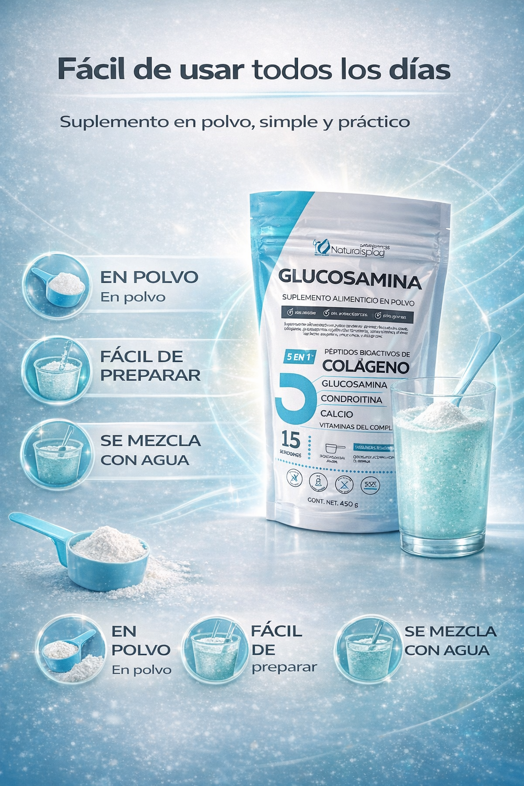 Actúa nutriendo profundamente las articulaciones, ayudando a mejorar la lubricación, fortalecer el cartílago y apoyar la estructura ósea. Su combinación de glucosamina, colágeno bioactivo, condroitina, calcio y vitaminas del complejo B trabaja de forma sinérgica para mejorar la movilidad y reducir el desgaste natural causado por la edad y la actividad diaria.
